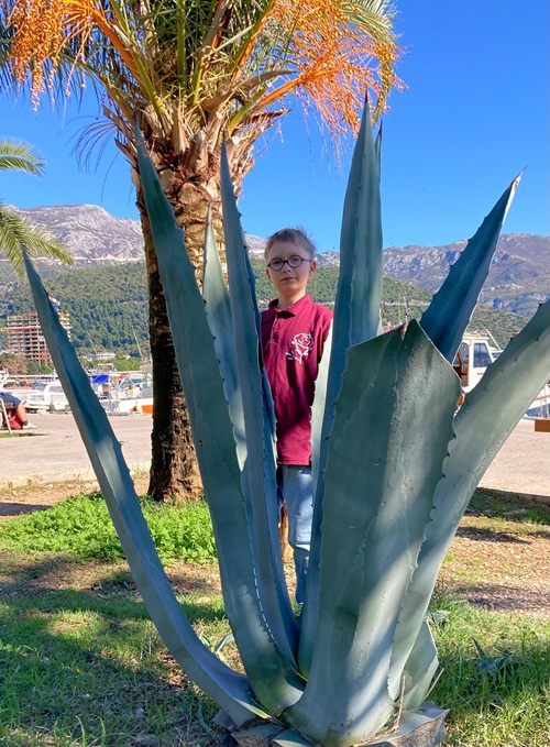 Danach schlenderten wir durch die Altstadt von Budva. Ich kletterte auf den Felsen bei der Ballerina-Statue, während Oma ein paar Fotos machte. Von dort oben hat man einen tollen Blick aufs Meer. Auf dem Rückweg fielen uns wieder die vielen freilaufenden Katzen und Hunde auf. Besonders die Katzen scheinen hier richtig beliebt zu sein – gepflegt, zutraulich und von den Einheimischen gefüttert. Oma meinte, dass es wohl auch deshalb kaum Ungeziefer gibt – die Katzen sorgen hier für Ordnung.