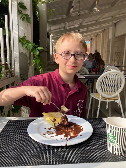 Um 17:00 Uhr trafen wir uns mit ein paar Freunden – Jan, Jonas und Yining – noch einmal zu einem Abschiedseis in unserer Lieblingseisdiele. Wir lachten, erzählten und machten ein paar letzte Fotos zur Erinnerung. Beim Abendessen saßen wir alle noch einmal zusammen mit Eva, Konstantin und Sofia an einem Tisch, redeten über das Turnier und wünschten uns gegenseitig eine gute Heimreise.